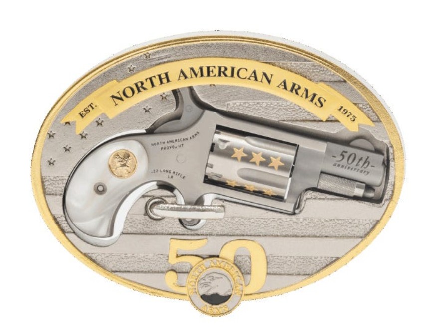 NAA 50TH ANNIVERSARY 22LR WITH BELT BUCKLE GOLD ZERCONIUM WITH 50TH ANNIVERSARY INLAY NAA-22LR-BBO-50
