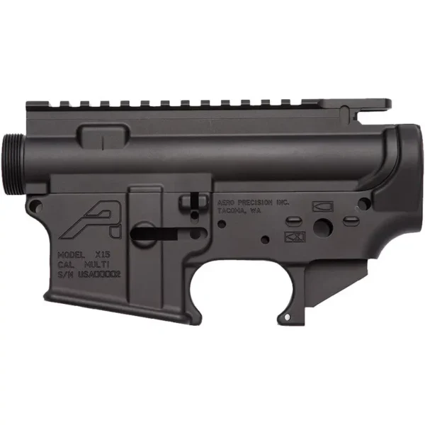 Aero Precision’s AR-15 Stripped Receiver Set includes an AR-15 stripped upper Receiver and an AR-15 Gen 2 stripped lower receiver. The upper receiver features M4 feedramps, .250″ takedown pin holes. The lower receiver features an upper tension screw, rear takedown pin detent hole threaded for a 4-40 set screw, flared magwell, and is marked “Cal Multi”. It works with standard AR-15 components. Both the upper and lower receiver are machined from 7075-T6 forged aluminum.