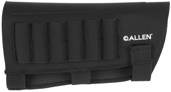 The Allen Company Mesa Buttstock Rifle Cartridge Carrier is the ultimate solution for any shooter looking for functionality and comfort. Designed with a boasting raised cheek piece, this carrier effortlessly contains six rifle cartridges, ensuring quick access for on the fly shooting needs. Provides seamless installation through with the two elastic rear straps and an adjustable front cinch strap. From .223 to 300 Winchester Magnum, this carrier accommodates an array of rifle cartridges. The carrier features stretch fabric over neoprene, combining durability and flexibility. A removable 1/4-inch-thick cheek pad allows you to customize your shooting experience to the max.