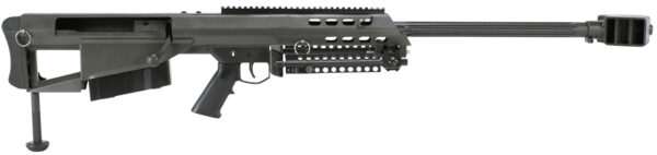 The Model 95 is packed into a lightweight bullpup design with the intense power of a .50 BMG caliber magazine-fed weapon, the pinpoint accuracy of a bolt-action rifle and the effortless functionality of a perfectly designed machine. This compact rifle offers the velocity and accuracy of a 29″ barrel with a three-port, fanned, high efficiency muzzle brake and an OAL of just 45″. Its butt plate, magazine well and trigger housing are unitized, helping to stiffen the steel lower receiver. The steel upper receiver is reinforced with an 11.25″ 27 MOA M1913 rail and supports the chrome-chambered, fluted barrel. The bolt carrier assembly is a simple design with a quick release lever for fast disassembly. The firing pin is driven by dual springs designed for consistency and lightning-quick lock time. Included is a 5+1 round magazine, bipod and a hard carrying case.