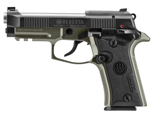 BERETTA IS BRINGING BACK THE CLASSIC .380 WITH EXCEPTIONAL COMFORT & STYLE. The 80X CHEETAH reimagines the legendary platform with a new sleek design and enhanced features. Ergonomically redesigned for modern day carry the 80X Cheetah includes a smaller Vertec style grip profile the X-treme S Double/Single trigger skeletonized hammer a 13+1 round capacity and comes optics-ready out of the box. – Emphasizing the importance of training when concealed carrying Beretta has made a carry gun that is actually comfortable to carry and enjoyable to shoot. With an easier-to-rack slide lightened recoil from tuning of the slide weight spring rates and chambering in .380 the 80X Cheetah is designed with an enhanced fit and style for elevated speed and control. – For those looking for something different the 80X Cheetah comes in a premium assortment of color options with limited edition multi-tone variants and market-leading finishes. The 80X Cheetah launch edition comes with a special leather pistol case. – Before we made it the most comfortable and controllable pistol available we made it a Beretta. The Beretta 80X Cheetah Style in EVERY detail. – ADJUSTABLE X-TREME S TRIGGER W/ SKELETONIZED HAMMER – A light crisp and consistent single action/double action pull. The overtravel is adjustable to shorten the reset to 1mm. – OPTIC-READY SLIDE W/ INTERCHANGEABLE SIGHTS – Comes optics-ready allowing for the ability to add an optic to improve accuracy and target acquisition speed. – VERTEC GRIP W/ FRAME MOUNTED SAFETY & PICATINNY RAIL – Allows for a more compact profile for carrying concealed. The added feature of a Picatinny rail gives the option for weapon mounted lights and other Picatinny mounted accessories. – 13-ROUND STANDARD MAGAZINE – 13-round capacity compact size and optimized ergonomics for concealed carry. – 80X CHEETAH (GREEN EDITION) SPECIFICATIONS – ACTION SINGLE/DOUBLE – FIRE CONTROL HAMMER-FIRED – BARREL LENGTH 3.9 IN – CALIBER .380 ACP – GRIP WIDTH 1.06 IN (AT GRIP RADIUS) – MAGAZINE CAPACITY 10 13 ROUNDS – OVERALL HEIGHT 4.9 IN – OVERALL LENGTH 6.8 IN – OVERALL WIDTH 1.4 IN – SIGHT RADIUS 133 MM – WEIGHT (UNLOADED) 25 OZ
