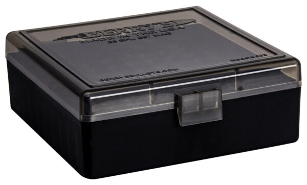 Made in the USA, Berry’s 003 100 round box is made from high impact polypropylene for increased strength against cracking, chipping, warping, expansion, or contraction. The box is stack able and features a stronger, flip-top design, allowing the securing of ammo storage with easy one-handed operation.