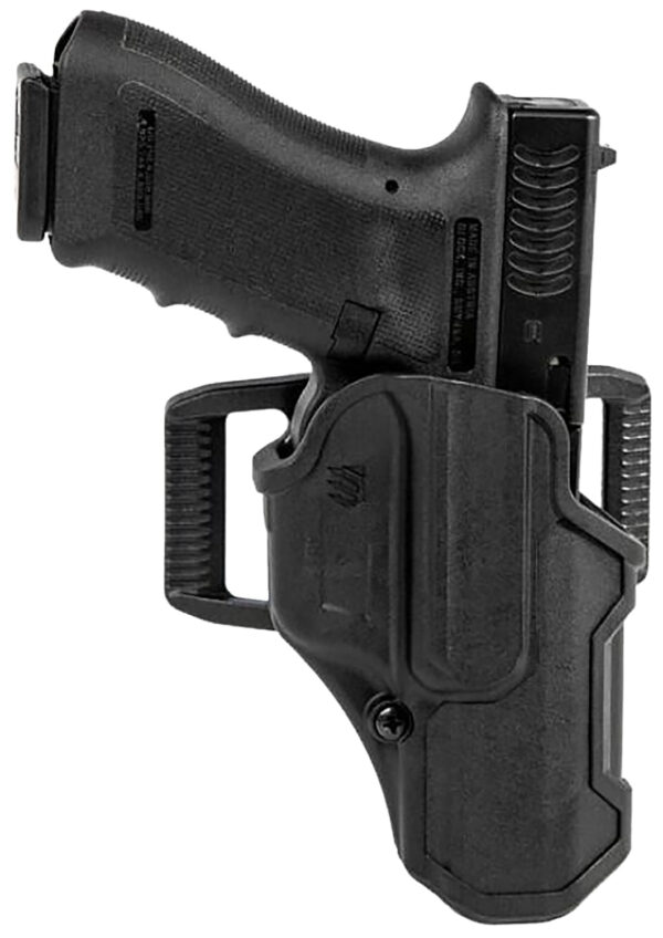 The T-Series is an outside the waistband holster with a low-profile design compatible with slide-mounted red-dot optics. Featuring a thumb-activated retention utilizing Master Grip Principle; polymer construction provides protection with minimal bulk while the low-friction internal material creates a smooth, effortless draw with sound-dampening lining for stealthy drawing and re-holstering. The L2C series is a non light bearing. Fits Glock 43/43X; Kahr PM9/PM40.
