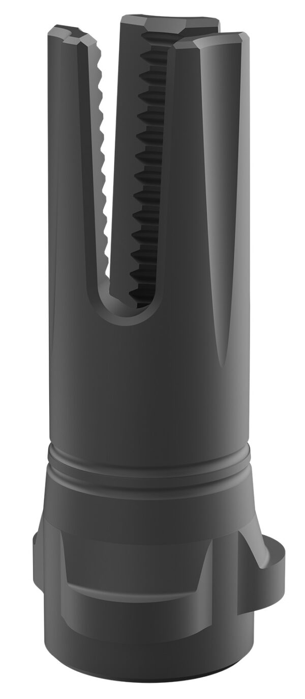 The Breek-LOK 3QD QD Suppressor Attachment system sets the standard for quick-detachmounts, delivering unmatched speed and simplicity. Its streamlined profile integrates seamlessly with firearms, optimizing both aesthetics and performance. The Breek-LOK 3QD Scorch 3-Prong Flash Hider minimizes muzzle flash by dispersing and redirecting gases, aided by internal threads that enhance suppression beyond standard hiders. This reduces flash, preserves a clear sight picture, and prevents temporary blindness in low-light conditions. The prongs varying slot lengths eliminate the ping sound common with tine-style flash hiders, while the low-profile design maintains a clean, streamlined appearance.