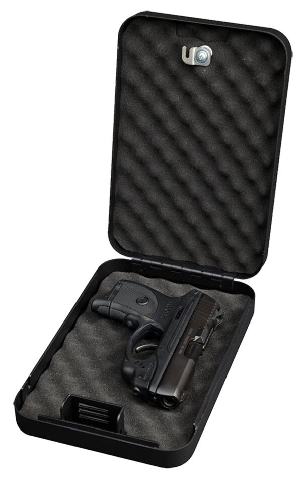 The Bulldog Personal Key Lock Vault is designed for maximum security. Its steel, deluxe heavy duty metal combination lock, and deluxe egg crate foam keep your valuables secure. Its unique hinge design keeps the lid open in position. This vault meets TSA firearm guidelines for travel. Includes a heavy duty steel security cable.