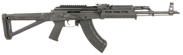Caliber: 7.62x39mm – Semi Automatic Rifle – Long Stroke Gas Piston System – 30 Rounds – 16.25 Steel Barrel with a 1:10 Twist – Forged Front Trunnion – 14×1 LH Threaded Muzzle – Standard AKM Sights – Hinged Railed Dust cover – Stamped Receiver – Slant Brake – Magpul MOE Furniture – Rak-1 Enhanced Trigger Group – Weight: 7.5 lbs – Color: Black Finish