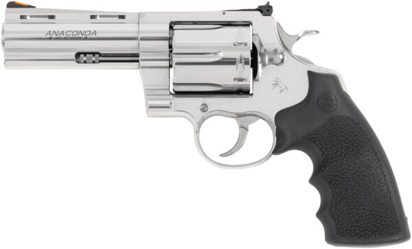 Colt’s popular Snake Gun revolver series gains a new addition with the updated Anaconda. The 2021 Anaconda has been fully re-designed to utilize an oversized Python action. Bulked-up with a solid stainless steel frame for strength and durability this DA revolver is worthy of its pedigree. – Experience the Linear Leaf Spring Action for a non-stacking smooth-as-glass trigger pull. With recoil-absorbing Hogue grips and adjustable interchangeable sights this .44 Magnum is cool and comfortable from the range to the woods. – A recessed target crown offers protection and the frame is drilled and tapped for optics mounts making the Anaconda an unstoppable huntsman’s sidearm. – Capacity: 6 Rounds – Frame Material: Stainless Steel – Finish: Semi-Bright – Barrel Technical: 1:20 LH 6 Groove – Barrel Length: 4.25 – Overall Length: 11.25 – Overall Height: 7.25 – Overall Width: 2.75 – Front Sight: Red Ramp – Rear Sight: Target Adjustable – Trigger Action: DA/SA – Grip: Hogue Overmolded – Unloaded Weight: 53 oz