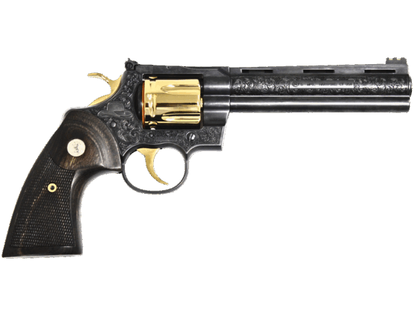 COLT PYTHON LETS RODEO POLISHED BLUED ENGRAVED/24KT GOLD REVOLVER 357 MAG 6″ 6 RD