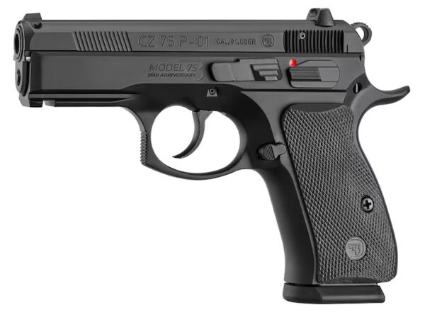 The CZ P-01 is a compact, aluminum-framed 9mm designed for LE and Military duty, but its compact size and the reduced weight due to its forged alloy frame make it ideal for discrete carry as well. Equipped with a decocker, the P-01 provides convenience for those who prefer hammer-down carry. With a heavy first-round trigger pull, any additional shots are a light, crisp single action.