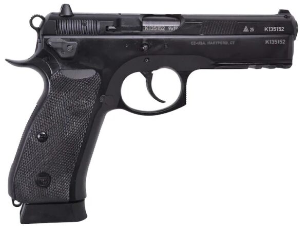The CZ 75 SP-01 is a full-size SA/DA pistol that blends classic CZ 75 reliability with upgraded ergonomics and manufacturing from the NATO-approved P-01. It features an integrated 1913 rail, rubber grips, and a corrosion-resistant black polycoat finish.