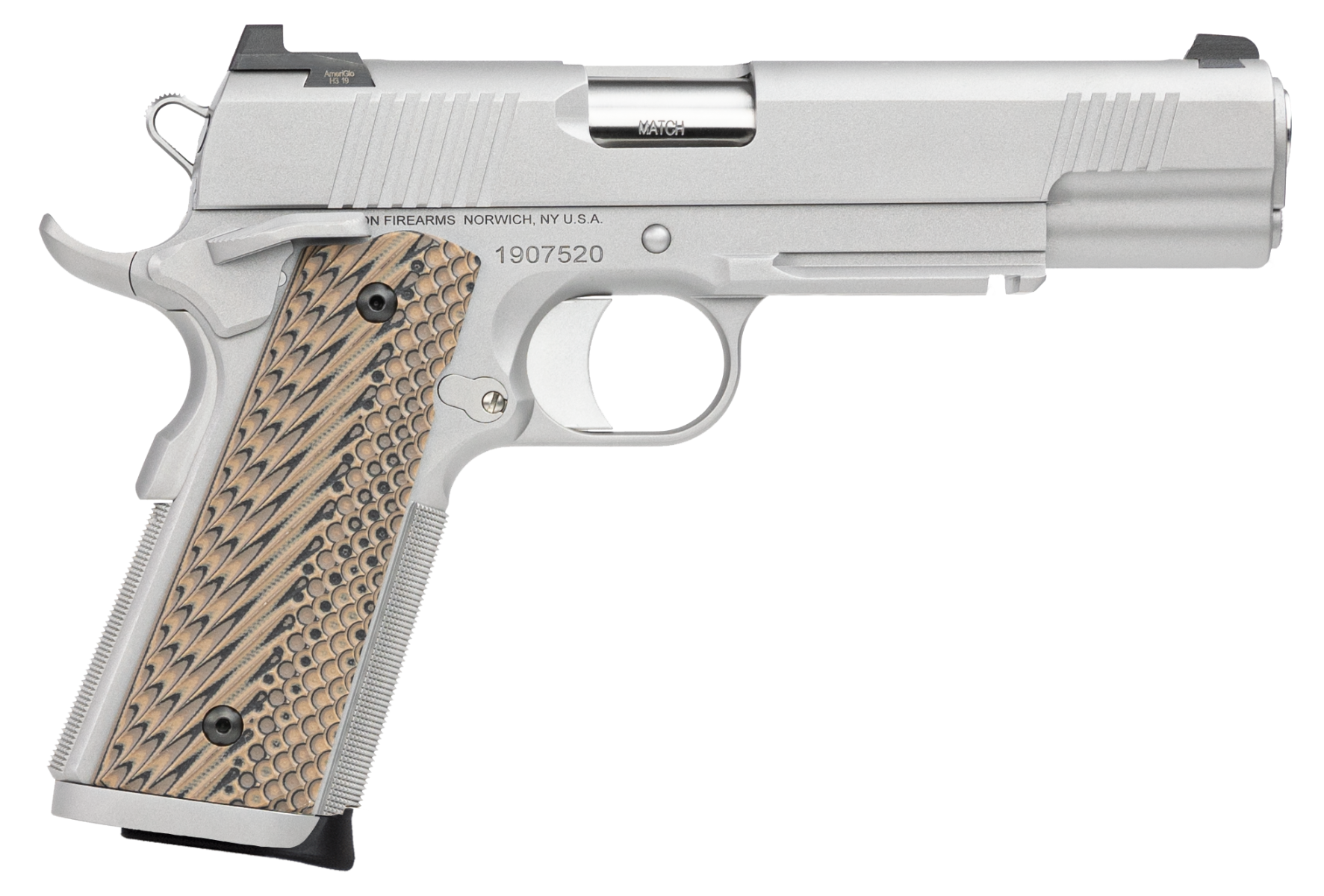 Another pistol getting a facelift for 2020, the Specialist features a new style light rail frame (as seen on the Kodiak) as well as forward cocking serrations and Dan Wesson inset slide serrations that reduce glare between the sights. The stainless steel slide has a 1913-style rail integrated into it for installation of lights and lasers, while the undercut trigger guard and 25 LPI front strap checkering help plant the pistol. Controls are prominent, with an ambidextrous thumb safety, extended magazine release and a magwell to facilitate quick reloads. Finished off with a set of G-10 grips that guide the hand up and into the extended beavertail, the Dan Wesson Specialist is topped with a set of tritium sights front and rear, the back sight configured in a stacked dot style.