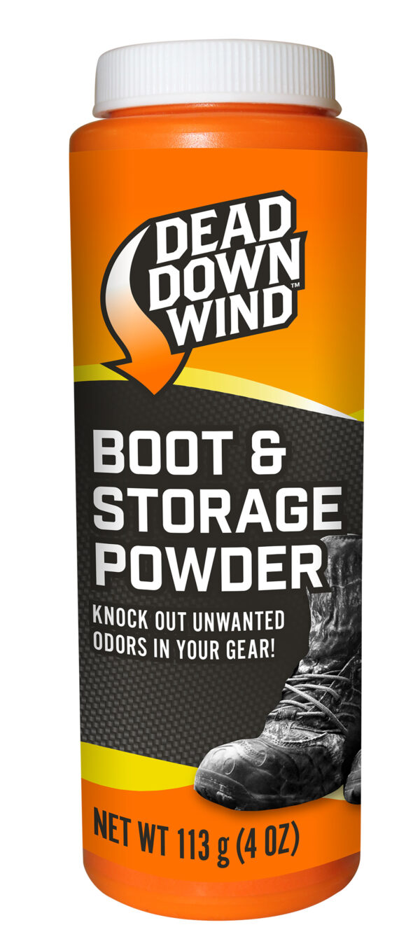 Boot & Storage Powder from Dead Down Wind. Each foot has 250,000 sweat pores, that’s 500,000 reasons to use the odor control powder. Apply powder directly to skin to prevent the production of human odor. Works in hot or cold weather, especially during physical exertion. Ideal for footwear, storage bags, clothing, even gloves. Use in storage containers to control odor.