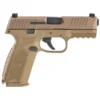 The FN 509 is built on the proven architecture of the FNS Compact, FN made changes internally and externally to meet the rigorous performance standards of the MHS requirements and further developed the platform into the FN 509 with the help from industry experts. This model features 4″ cold hammer-forged stainless steel barrel, combat-style sights, and improved front and rear cocking serrations. It also features a MIL-STD 1913 accessory mounting rail, and interchangeable backstraps. It has a double action operation, fully ambidextrous slide stop lever and magazine release, as well as fixed 3 dot luminescent sights. This model also features a polymer construction with replaceable steel frame/slide rails.
