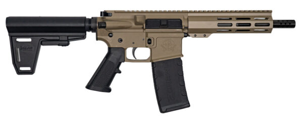Type: AR15 Pistol – Finish: Cerakote – Caliber: .223 Wylde – Barrel: 7.5 – Barrel Options: 4150 CRMOV Nitride – Rifling: 1:8 Twist – Thread Pitch: 1/2×28 – Feed Ramp: M4 – Lower Receiver: Billet Aluminum 7075 – Upper Receiver: Forged Aluminum – Gas Block: . 750 – Handguard: 15.25 Aluminum 6061 MLOK with Full Top Picatinny Rail – Trigger: Mil-Spec – Custom Muzzle Device – Pistol Brace: G-Force GFAB001 Ace of Brace Adjustable 5 Position Brace