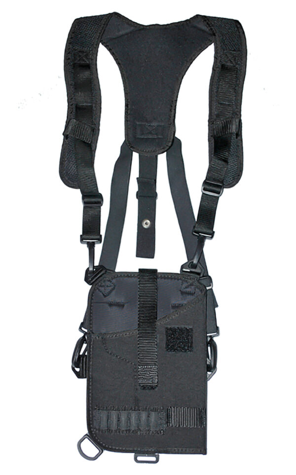 The GrovTec Trail Pack holster is made with 1000 denier nylon material. The padded Air-Mesh shoulder harness will fit over bulky jackets. It’s side straps adjust to eliminate movement and distribute weight so your handgun is securely held and out of the way, yet accessible no matter how rigorous the activity. Adjusts to fit either beneath or on the outside of jackets. Retention strap is fully adjustable. Includes belt loops for versatility and extra ammo loops. Fits med/lg DA revolvers.