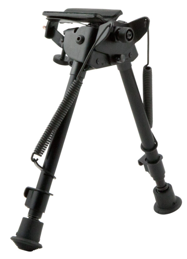 Harris bipods clamp to most Q.D. stud equipped bolt action rifles and have a sling attachment provision. Spring loaded folding legs are quickly adjustable for height, leg notches in 1″ increments.