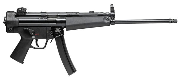 The Heckler & Koch SP5 is an authentic sporting version of the MP5 in the US. Designed and manufactured to meet the definition of a civilian pistol, the SP5 is loaded with authentic features, like a Navy barrel with threaded tri-lug adaptor, paddle magazine release and fluted chamber. Includes two 10rd magazines.