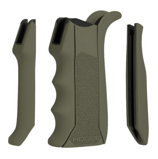 Precision fit for AR-15/M16 style rifles. Material: OverMolded rubber. Texture: Cobblestone. Color: OD Green. INCLUDES: 1 Main Grip Body. 2 Fronstraps (with & without finger grooves). 2 Backstraps (with & without Beavertail). Installation Hardware. FEATURES: Hogue’s classic OverMolded grip design, re-engineered to offer multiple configurations. Molded from modern durable rubber which is virtually impervious to all oils and solvents found around firearms. Cobblestone texture provides an efficient non-slip, non-irritating stippling pattern. 17 design provides more vertical grip angle than standard A2 grip.