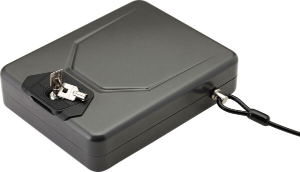 The Alpha Elite Lock Box fits 1911 size pistols and 4″ revolvers. The Safe features tamper proof construction, protective foam interior, certified child-resistant and meets TSA airline guidelines for firearms storage. Includes 3′ security cable and two keys.