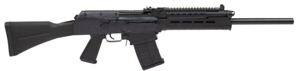 12 GA – Shoots 2 ¾ and 3 shells – Picatinny Rail – Chrome lined barrel – 4-Position gas system for adjustments based on loads – Fits Rem Choke tubes – Comes with two 5 round magazines – Barrel Length: 18.7 – Overall Length: 39.29 – Synthetic forearm with MLok Slots – Slinghook