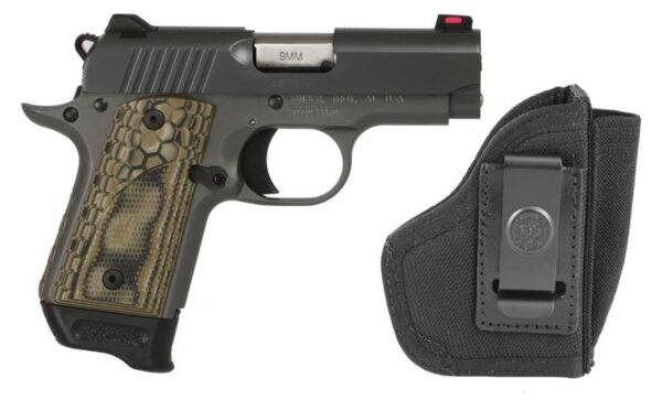 Practical carry features include the included DeSantis Pro Stealth Holster for secure retention and concealment, two 7-round magazines for extended time between reloads, and a thumb safety for familiar manual control and added carry confidence.