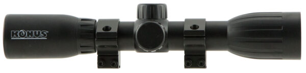 The Konusfire riflescopes are designed as a great choice for first time shooters. The scope is an excellent choice for rimfire competitions and hunting deer and white tails. It offers enough maximum magnification to hit prairie dogs at a quarter mile and enough field of view on low power for fast moving rodents up close. Features 1/4 MOA adjustable turrets, fog proof, waterproof and shock resistant, 30/30 reticle, second focal plane, 1″ tube and coated optics. Includes .22 Dovetail mounting rings.