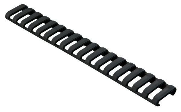 Ladder Panels offer very low-profile 1913 Picatinny rail coverage. The Santoprene material provides a rubbery surface for improved weapon control and rail protection. Easily cut for custom lengths, each panel fits one side of a carbine-length rail (18 slots). One panel per package.