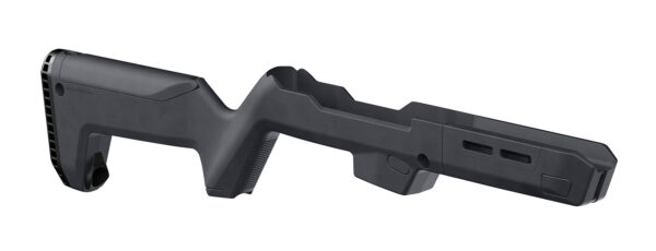 The Magpul PC BackPacker has a drop-in design compatible with all factory Ruger PC Carbine models offered in 9mm Luger and 40 S&W. Features a unique locking interface to attach the barrel assembly to the stock body when being transported, ergonomic M-LOK-compatible hand guard, water-resistant grip storage compartment and a second compartment in the riser section, optional QD sling mounting capability and MOE SL nonslip rubber butt-pad; compatible with the MOE SL Enhanced Rubber Butt-Pad (MAG349) for an additional 3/8″ LOP and enhanced user comfort. Includes interchangeable standard and optic-height cheek risers.