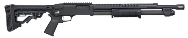 The 590R Rotary Safety Selector shotguns combine time-tested pump-action performance with ground-breaking new features like a rotary safety selector an ergonomically-designed forend and an integrated barrel/heat shield combination. – Ambidextrous AR-Style Rotary Safety Selector – 18.5 Barrel with Integrated Heat Shield – Enlarged Beveled Loading Port with Exposed Follower – Flat Profile Trigger with smooth crisp break – 5-Position Adjustable Stock w/MOE Pistol Grip Interchangeable Recoil Pad 2 QD Ports – Top Picatinny Rail for AR-Style Optics – Specifications – Gauge 12 Gauge – Action Type Pump-Action – Chamber Size 3 – Usage Security – Barrel Type Stand-Off Integrated Heat Shield – Barrel Length 18.5 – Barrel Finish Phosphate – Choke Cylinder Bore – Capacity 6+1 – Length 36.4 – LOP 12-15.25 – LOP Type Adjustable – Sights Picatinny Rail – Stock 5-Pos Adj Stock w/Interchangeable Pad MOE Pistol Grip Compact Forend (Black) – Trigger Flat Profile – Safety Rotary Safety Selector – Weight 7