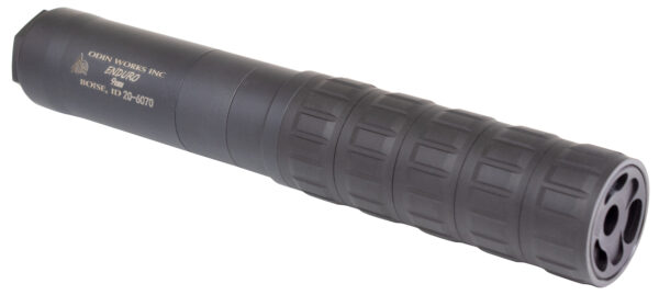 The ODIN Works Enduro performs as the name implies a do it all Suppressor for your shooting needs. The Enduro is a feature packed modular suppressor design that has industry leading sound properties. Simply put this can sounds amazing. You can shoot 338 Lapua through it in its full configuration or shorten it all the way down and shoot 22LR through it. For pistol calibers the Enduro is rated for 9mm and comes with a 9mm endcap that will work with all other calibers. The Enduro comes with the body and two baffles made from heat treated stainless steel. It also comes with five 7075 hard anodized aluminum baffles for the shooter to use in whatever length fits their needs. The modular Enduro features different caliber endcaps also 7075 aluminum that can be switched out to match your gun’s caliber. At the other end the Enduro has included thread adapters that can be changed to fit 1/2-28 and 5/8-24 threaded barrels. ODIN Works also offers an adapter so you can use your current OSM muzzle break with your Enduro for quick changes (OSM Adapter sold separately). The threading on the suppressor body is 1 3/8-24 so it will accept ASR Plan B and other compatible muzzle devices. If you can only have one suppressor the Enduro is The One. – Features – Caliber: 9MM – Length: 9.7 – Diameter: 1.5 – Weight: 19oz – Material: Titanium and 17-4 Stainless – Mounting: QD – Rating: Semi – Color: Black Cerakote/ Anodize Black