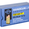 PPU handgun ammunition is available in many popular calibers for pistols and revolver style handguns. PPU handgun ammunition is brass cased, non-corrosive boxer primed and features improved bullet designs which result in greater energy, performance, bullet expansion and reliability.