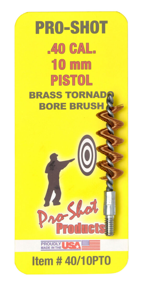 Pro-Shot 4010PTO Tornado Bore Brush .40/ 10mm Cal Pistol #8-32 Thread Brass Spiral Wound Loop