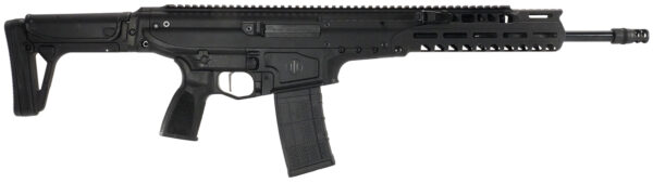 The PWS UXR features a Barrel Xchange System: An innovative barrel exchange system enabling users to switch between calibers and barrel lengths; Modified Long Stroke Piston System; Bore Evacuator; ambidextrous receiver & buttstock, folding buttstock with cheek and LOP adjustments. Configurable to either left or right-side folding. Mounted using a 1913 picatinny rail attached to the trigger housing; three position adjustable gas system including a dedicated suppressor setting; PWS FRC compensator; M-LOK handguard; FRC Compensator, the extended FRC compensator.