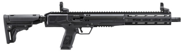 Caliber: 45 Auto – Capacity 13+1 – Weight 7.1 lb. – Overall Length 30.60 – Length of Pull 12.60-14.60 – Twist 1:16 RH – Barrel Length 16.25 – Barrel Feature Threaded Alloy Steel – Thread Pattern .578-28 – Receiver Material Aluminum Alloy – Grooves 6 – Stock Folding Adjustable Length of Pull – Sights Adjustable Ruger® Rapid Deploy – Receiver Finish Type III Hard-Coat Anodized – Standard model features a threaded barrel reversible side-folding adjustable stock and 13-round magazine. – Designed to accept commonly available Glock-pattern full size magazines. – Unique bolt-over-barrel design with the magazine in the grip allows for excellent balance and control. – Folding stock and collapsible sights are ideal for storage. – The folding stock is reversible and features an adjustable length of pull but can easily be replaced with AR-pattern stocks. The rear of the receiver has a Picatinny rail for maximum accessory compatibility. – Features a 16.25 alloy steel barrel with .578-28 threaded barrel with thread protector allowing for the attachment of popular muzzle accessories including muzzle brakes flash hiders and caliber-appropriate suppressors. – Rated for SAAMI-spec +P ammunition further enhancing its versatility and performance. – Impressive ergonomics with ambidextrous manual safety reversible charging handle ergonomic bolt release and extended magazine release. – Utilizes Ruger’s safe reliable and proven Secure Action fire-control system that combines a protected internal hammer with a bladed-safety trigger. The trigger has a short smooth pull clean break and positive reset. – CNC-milled handguard that is Type III hard-coat anodized aluminum for maximum durability with M-LOK accessory attachment slots on seven sides. Multiple QD sling sockets allow for maximum versatility. – Ruger® Rapid Deploy folding sights are adjustable for windage and elevation and the full length Picatinny rail allows for optic mounting. – Safety features include: 1911-style ambidextrous manual safety; an integrated trigger safety; lightweight firing pin; neutrally balanced sear with significant engagement and strong spring tension; and hammer catch to help prevent the hammer from contacting the firing pin unless the trigger is pulled. – Also includes: one magazine M-LOK QD sling socket and hex wrenches for disassembly.