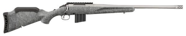 The Ruger American Predator Gen II bolt is CNC machined from stainless steel for smooth operation and the familiar three-lug design with a 70 degree throw provides ample scope clearance. Features a splatter finished stock that provides excellent grip without being too sharp or abrasive; installed spacer allows for length of pull to be adjusted; low comb improves sight alignment when using optics; medium contour, spiral, threaded barrel; factory-installed radial port muzzle brake; 3-position tang safety; Ruger Marksman Adjustable trigger and Picatinny rail. Includes one magazine and steel sling swivel studs.