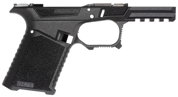Serrations and bump on trigger guard to help control recoil and Serrations on top of beaver tail reduce glare. Flared mag well, thumb accelerator pad. Advanced contour grip with aggressive texturing. Picatinny rail (not a Glock rail) MIL-STD 1913 Picatinny. High beaver tail with low profile bore axis and holster compatibility, slide stop guard. Larger trigger guard for better access with gloves. Recessed contoured mag release area for faster mag changes. Multi caliber- Compatible with compact 9mm, 40 cal, 357SIG.
