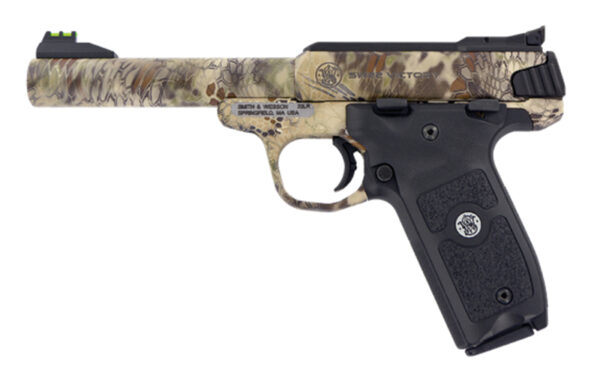 Smith & Wesson, MFG# 10297, UPC: 022188867886, UOM: EA, SW22 Victory, 22LR, 5.5″ Barrel, Fiber Optic Sights, Kryptek Highlander, 10-rd, SMIT, SMITHG10, SMITHGALL, HG10, HGALL
