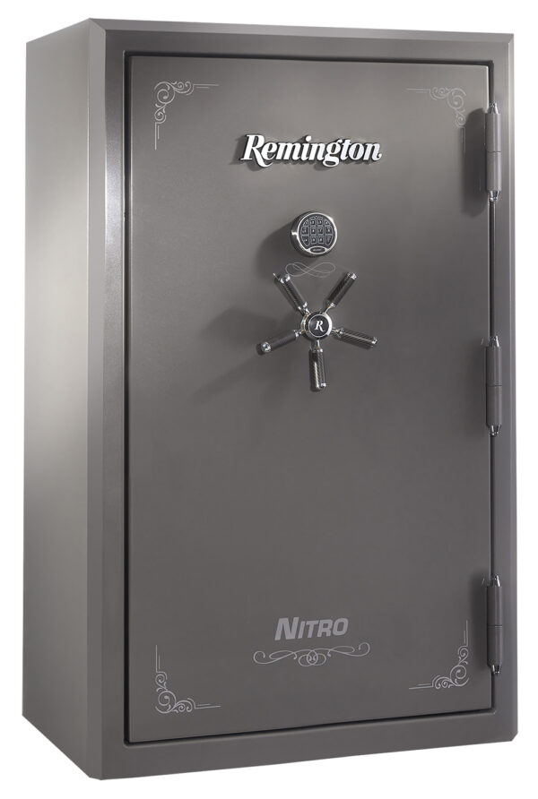 The Remington Nitro premium long gun safe is inspired by the longevity of Remington Nitro ammo. This safe delivers consistency and durability. Fire-rated for 90 minutes at 1800 degrees and water-resistant for 2 feet for up to 7-days. It features high-end security with a backlit SecuRam digital lock face and force-activated relocker. Dedicated gun storage for up to 47 long guns and 8 handguns will help stay organized. The interior is brightly lit by an automatic LED light and features UL-rated dual outlets and dual USB ports.