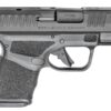 Rear serrations run over the top of the slide for quick and easy manipulation and are designed for positive engagement. The Hellcat’s flat trigger body and nickel boron-coated trigger group provide a consistent trigger pull. A full-length guide rod and dual active recoil spring ensure reliable operation and a smooth recoil impulse. The Hellcat also features a textured stand-off device at the muzzle that ensures the pistol will fire when pressed against a target.