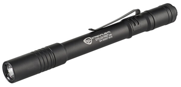 The Stylus Pro USB is a sleek compact pen sized, USB rechargeable, lithium ion battery powered flashlight designed for use in all markets. It features a tail cap switch for momentary or constant on operation, high and low modes, a pocket clip for convenience, and amazing brightness and runtime for a light of its size. The aluminum housing with Type II Military Spec anodizing helps make the light extremely durable and abrasion resistant. Packaged with a removable pocket clip and holster.