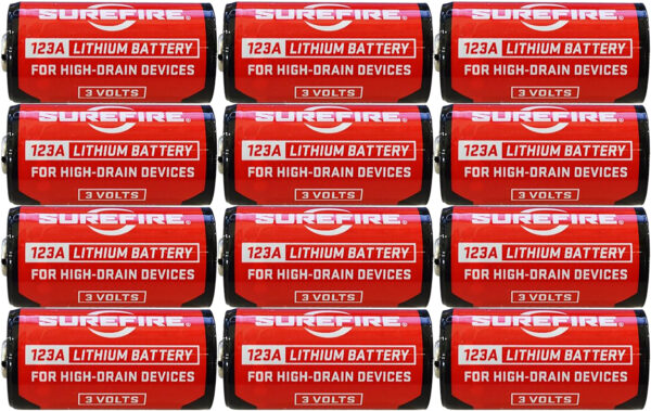 Surefire 123A, 3 volt batteries are optimized for high-drain use in flashlights. With a wide temperature tolerance and a 10 year shelf life they are excellent for emergency power needs.
