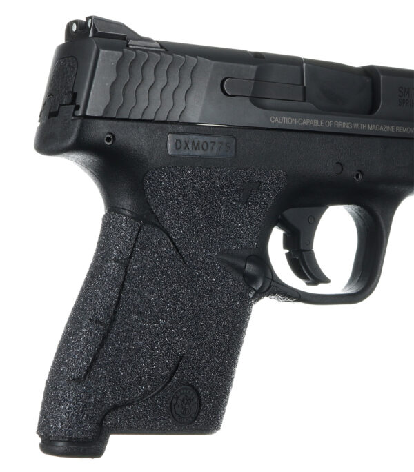 The Talon low profile grip is custom designed and manufactured for specific firearms to provide an OEM quality fit and finish, adding minimal bulk/size. Adhesive will not move once properly installed and can be easily removed with little to no residue. It is easy to install within minutes (proper installation requires a hair dryer or heat gun). Most cleaning solutions do not harm the grip (avoid aerosol-based solvents such as CLP). The rubber texture provides positive grip on the firearm and is more commonly used for concealed carry (less likely to irritate skin or snag on clothing) and users with softer hands. This rear wrap grip is made of a textured rubber and offers full side panel coverage including the thumb rest, trigger guard and high coverage on the backstrap. Made in the USA.