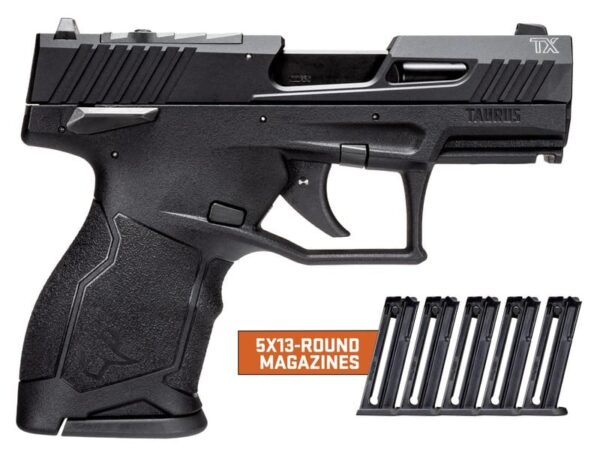 The pistol is equipped with a white-dot front sight and a fully adjustable rear sight, allowing for zeroing at various distances. Its ambidextrous manual safety enhances usability for left- and right-handed shooters. Weighing just 17.3 ounces, the TX22 Compact is highly portable while still offering a full 13+1 round loadout—ideal for range time, training drills, or low-cost practice.