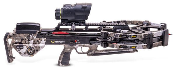 Meet the most technologically advanced compact crossbow the world has ever seen the TX 440 XERO® from TenPoint. – With 30-years of relentless innovation in crossbow technology boundaries have been broken and new standards have been set. – Meet the most technologically advanced compact crossbow the world has ever seen the TX 440 from TenPoint. – Equipped with the Garmin XERO X1i Rangefinding Scope the reverse-draw TX 440 shoots 440 FPS and features NEW Twin-Riser Technology that reduces riser flex and limb torq for greater down-range accuracy. – Measuring just 28 short and 6.5 narrow the TX 440 is equipped with a newly developed custom-built TriggerTech Trigger NEW ZERO-Trac Barrel and NEW GUIDE-Lock Arrow Rest System that create the most secure consistent launch platform ever built for a crossbow. – The NEW ACU-Lock Scope Bridge provides the ultimate foundation for scope stability and the NEW ACUSlide MAXX (patented) provides silent and safe de-cocking. – Features & Benefits – Garmin XERO X1i Rangefinding Scope: Exact Aim. Any Distance. – Twin-Riser Technology: 18% lighter and 2x stiffer than traditional risers resulting in 70% reduced riser flex for unmatched accuracy. – TriggerTech Precision Trigger: Using TriggerTech’s patented Zero-Creep Technology this 3lb. trigger features a clean crisp breaks like glass feel to help improve accuracy and precision. – CenterPunch HPX with Snap-In Nock: Alpha-Nock HPX snaps into the TriggerTech trigger box and allows you to hear and feel that your arrow is properly locked and loaded. – AR-Style Ambidextrous Thumb Safety: Conveniently located safety allows you to keep both hands on the crossbow and eyes locked on your game. – ZERO-Trac Barrel & GUIDE-Lock Arrow Rest System: Rail-less design reduces weight and eliminates arrow friction leading to straight nock travel and greater down-range accuracy. GUIDE-Lock Rest System features three points of contact for security and stability. The arrow rests on two never-wear spring-loaded ball-bearings and is held securely in place by a top-mounted retention brush giving you durability longevity and maximum precision at any distance. – ACUslide MAXX (patented) Cocking & De-Cocking System: Provides silent cocking and safe de-cocking. Stronger smoother and easier to operate. Remove your hand at any point and the handle stops in place. – ACU-Lock Scope Bridge: 25x stronger than traditional scope rails the NEW ACU-Lock Scope Bridge provides the ultimate foundation for scope stability. The full-length dual-mounted machined aluminum bridge allows for more scope adjustment heavier scope options & provides maximum in-the-field durability. – Package Includes: – Garmin XERO X1i Rangefinding Scope – ACUslide MAXX – 3 CenterPunch HPX Carbon Arrows – Integrated String Stop – Bow Hook – Quiver – 28 Length (w/o foot stirrup) – 11 / 6.5 Width Axle-to-Axle (uncocked/cocked) – 12 Power Stroke – 300 Draw Weight – 7.2 lbs. Weight (w/out accessories) – ACUslide MAXX Cocking Device – Garmin XERO X1i Rangefinding Scope – Forward Draw Draw style – ACUslide MAXX Safe De-Cocking