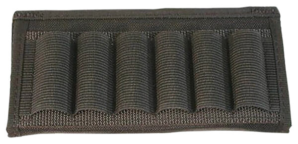Uncle Mike’s Kodra Cartridge Slide is made of a nylon web with sewn-on elastic loops and slides onto your belt. It fits belts up to 2.25″ wide.
